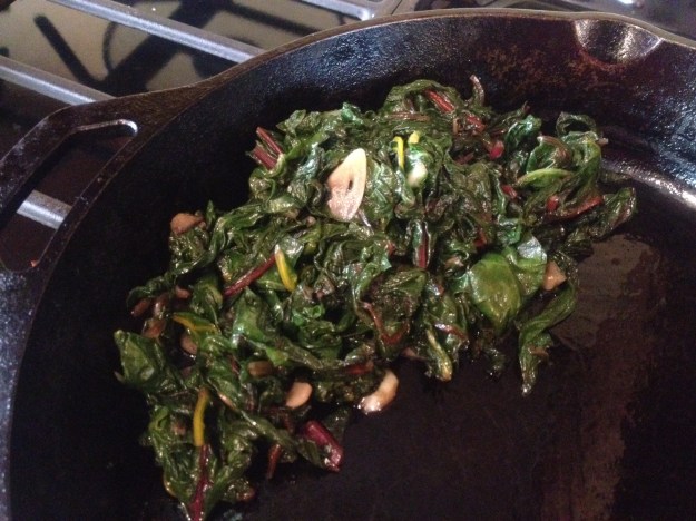 I just love Swiss chard (I think it’s the rainbow stems that get me). I usually add a little onion or shallot to the saute pan to give it a kick.