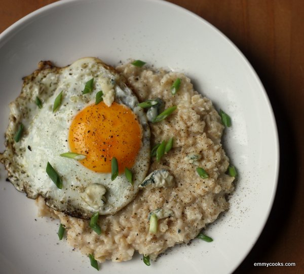 Savory Oatmeal with Blue Cheese and an Olive Oil Fried Egg
