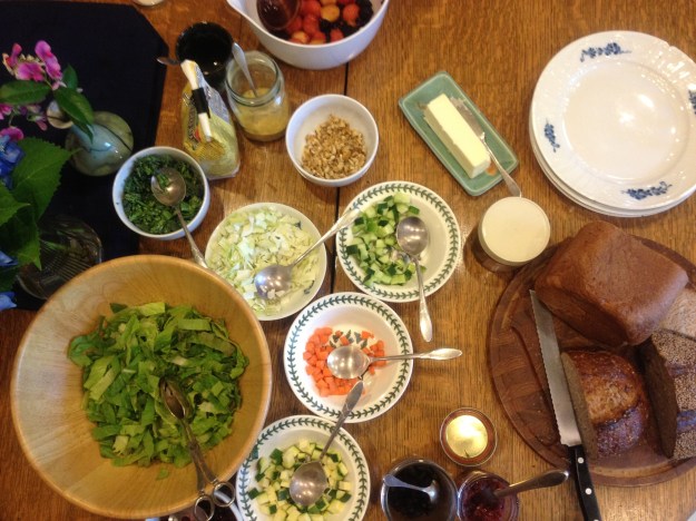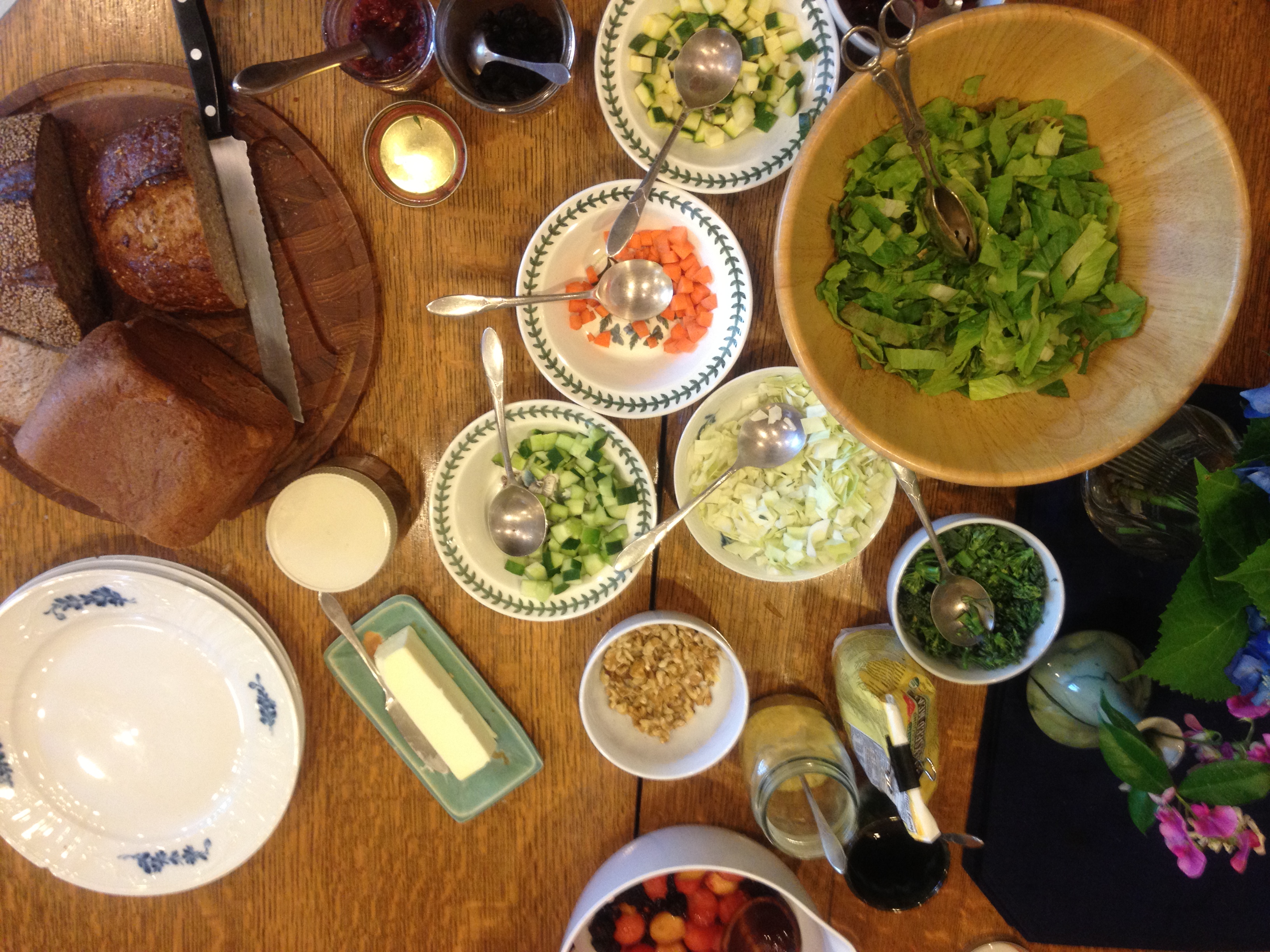 I see, scrolling down the page here, that I haven’t been feeding you anything too substantial lately. A little of this, a little of that. A few different kinds of bites cobbled together can make a meal, though. Especially when of the little bowls on the table is a bowl of hummus.