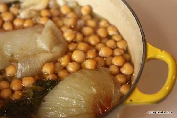 Now is a time that you’ll be happy to have cooked chickpeas on hand. If you don’t, start a pot now or open and drain a can. If you have caramelized onions defrosted from the freezer, you can have this dip on the table in five minutes. Otherwise give yourself an hour and five minutes to allow time to cook those onions nice and slow before you make this otherwise-quick dish.