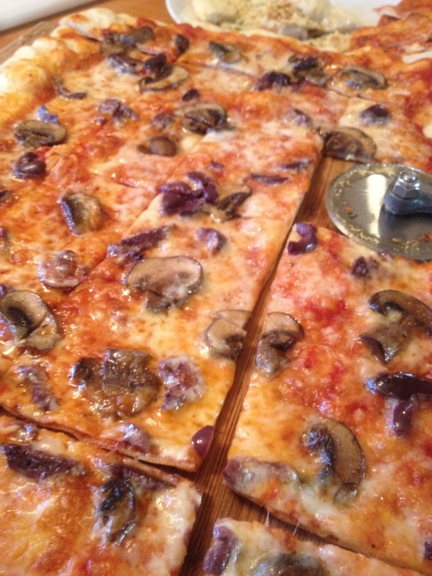 But first, this. A mushroom and olive pizza has a special place in my heart. Growing up, my dad (and sometimes my mom as well, but mostly my dad on nights when my mom was elsewhere) would take us kids out to a local pizza parlor. Red pleather, arcade games, a window where you could watch the guys toss dough and pile on toppings. We always got a mushroom and olive pizza and a pitcher of ice-cold root beer. It was, in the parlance of the day, so awesome.