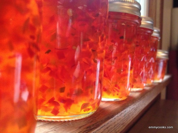 This week we made and canned the excellent sweet and spicy tomato jam from the Food in Jars Cookbook (watch for a giveaway tomorrow!). We also did a batch of hot pepper jelly, which I had never made before, and I kept adding more chiles (and then red chile flakes) to taste enough heat. Later it occurred to me that perhaps the jelly becomes spicier with time? We’ll have to see how that one turns out!