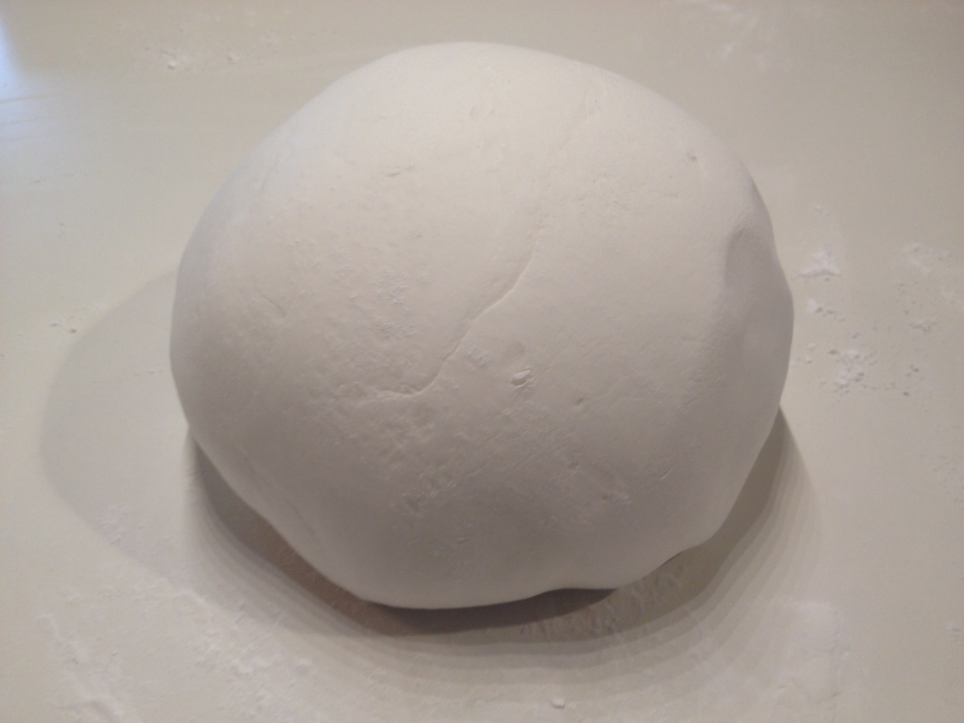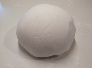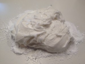 DIY Conversation Hearts start with a small bowl, in which you combine 1/2 c. water, 2 tsp. light corn syrup, and 1/4 oz. powdered gelatin. Whisk well, microwave for 30 seconds, then whisk well again. Dump mixture into the bowl of your mixer with 1 c. powdered sugar (in case you’re shopping, I used almost 2 1/2 lbs. powdered sugar in all). Turn mixer on low and slowly incorporate 2 lbs. powdered sugar, scraping the bowl down occasionally. Turn your sticky dough out onto a surface heavily dusted with MORE powdered sugar and knead like bread dough, adding more powdered sugar as you go, until the dough is satiny rather than sticky.